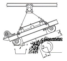 (2)非帶式電磁除鐵器:必須選擇電動行走小車 。以便電控自動吸、棄鐵。輕型特別是三吊點(diǎn)的除鐵器,一般選擇電動單軌單車吊掛。重型設(shè)四吊點(diǎn)的除鐵器可以選擇電動雙軌或單軌組合行走架。重型設(shè)三個吊點(diǎn)的可以選擇電動單軌組合行走架。